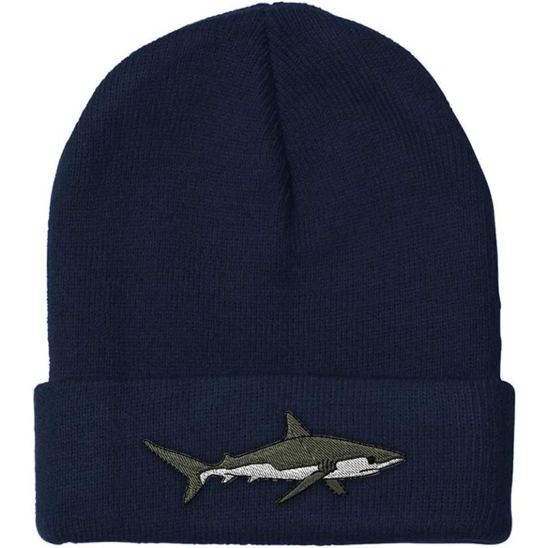 Custom Beanies for Men Shark Embroidery Ocean and Sea Life Winter Hats for Women Acrylic Skull Cap 1 Size(Navy Design Only)