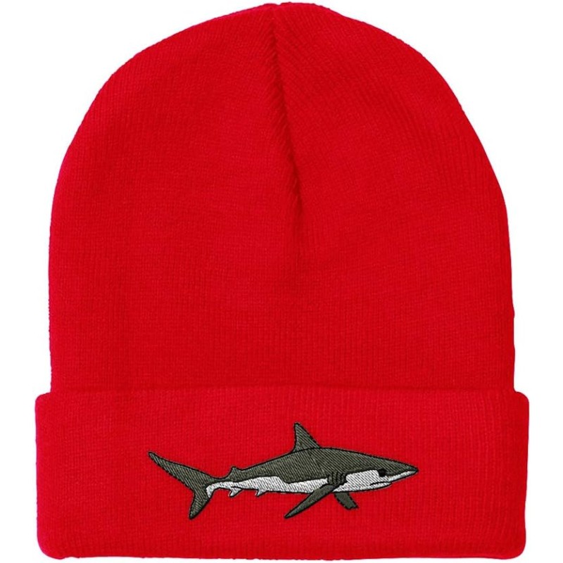 Custom Beanies for Men Shark Embroidery Ocean and Sea Life Winter Hats for Women Acrylic Skull Cap 1 Size(Red Design Only)
