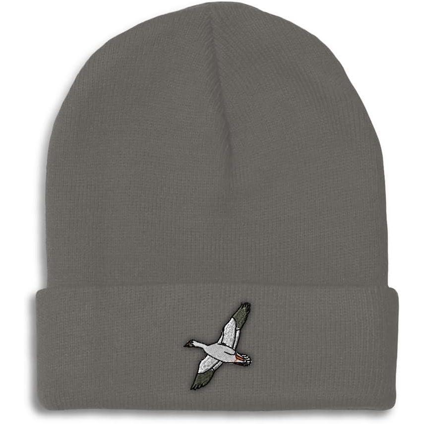 Custom Beanies for Men Snow Goose Embroidery Birds Winter Hats for Women Acrylic Skull Cap 1 Size(Dark Grey Design Only)
