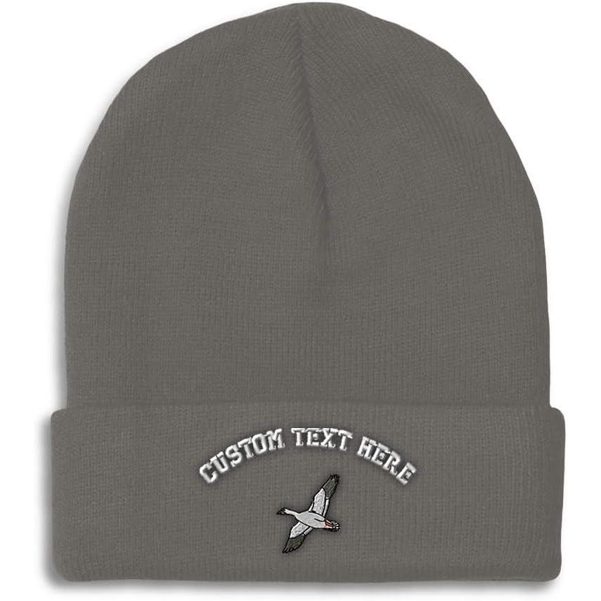 Custom Beanies for Men Snow Goose Embroidery Birds Winter Hats for Women Acrylic Skull Cap 1 Size(Dark Grey Personalized Text Here)