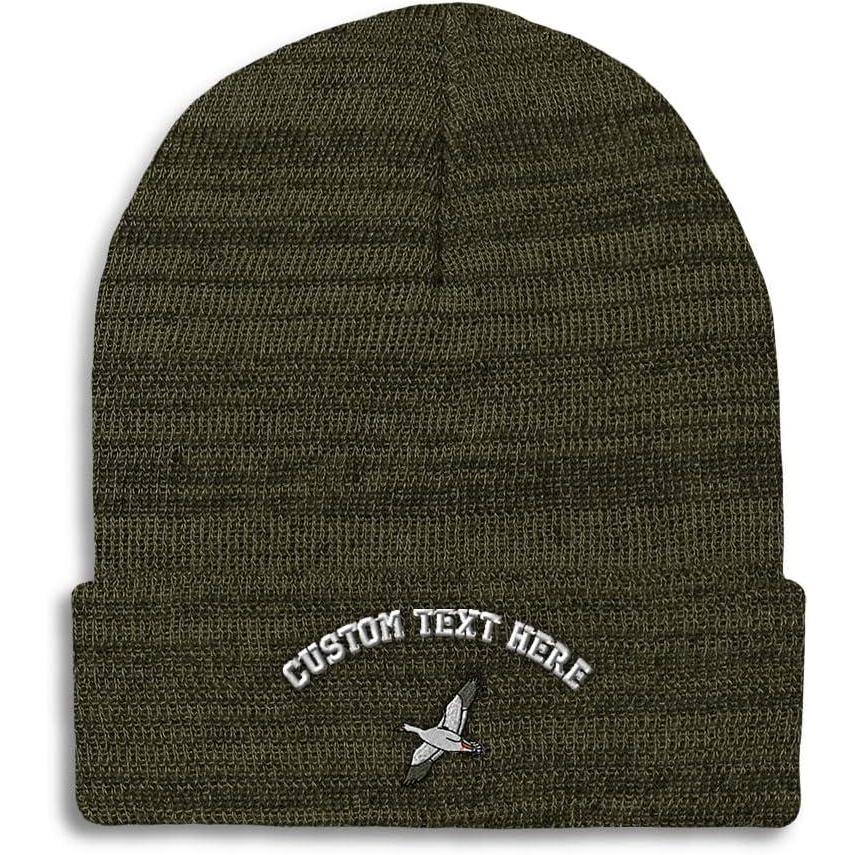 Custom Beanies for Men Snow Goose Embroidery Birds Winter Hats for Women Acrylic Skull Cap 1 Size(Heather Olive Green Personalized Text Here)