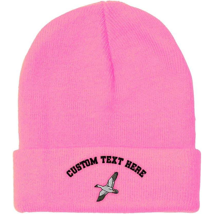 Custom Beanies for Men Snow Goose Embroidery Birds Winter Hats for Women Acrylic Skull Cap 1 Size(Soft Pink Personalized Text Here)