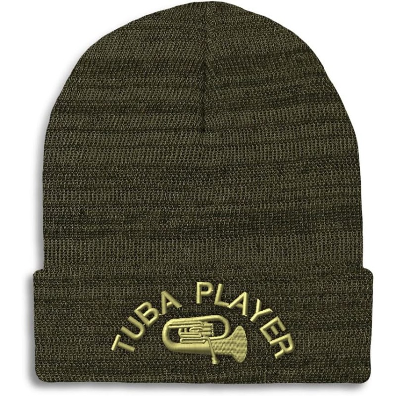 Custom Beanies for Men Tuba Player Embroidery Music Winter Hats for Women Acrylic Skull Cap 1 Size(Heather Olive Green Design Only)