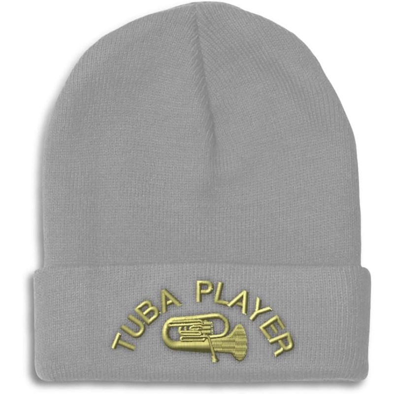 Custom Beanies for Men Tuba Player Embroidery Music Winter Hats for Women Acrylic Skull Cap 1 Size(Light Grey Personalized Text Here)
