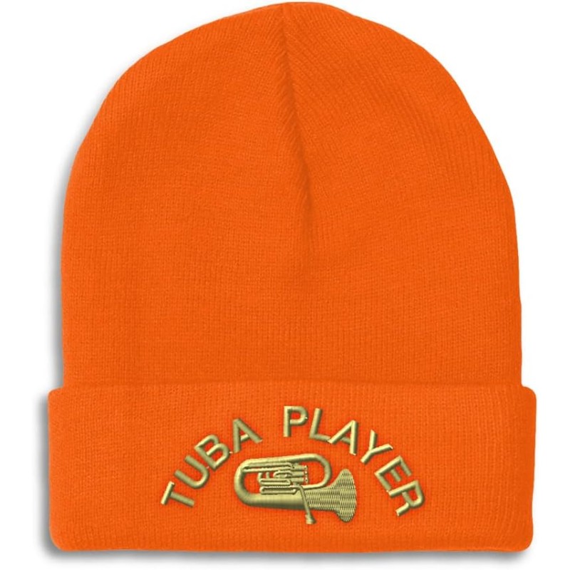 Custom Beanies for Men Tuba Player Embroidery Music Winter Hats for Women Acrylic Skull Cap 1 Size(Orange Design Only)