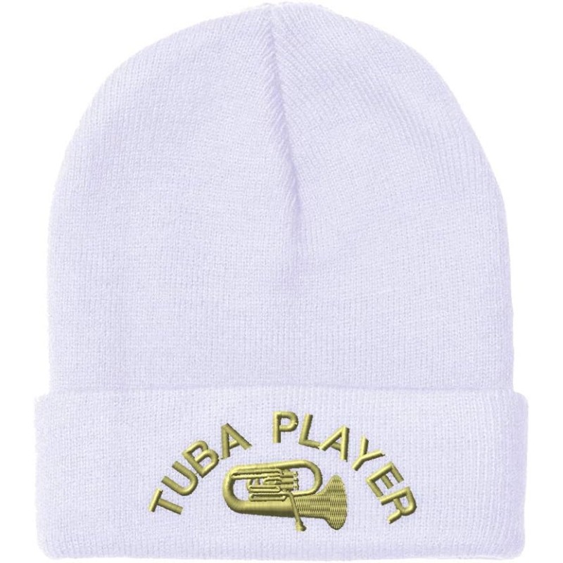 Custom Beanies for Men Tuba Player Embroidery Music Winter Hats for Women Acrylic Skull Cap 1 Size(White Design Only)