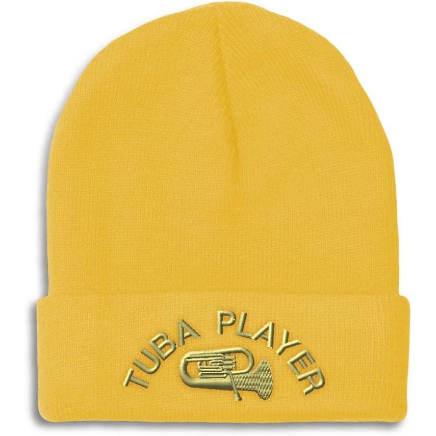 Custom Beanies for Men Tuba Player Embroidery Music Winter Hats for Women Acrylic Skull Cap 1 Size(Yellow Personalized Text Here)