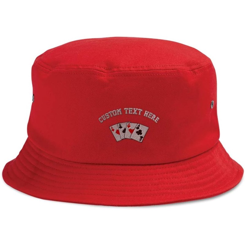 Custom Bucket Apparel Hat Poker Cards Game Embroidery Hats for Men & Women(Red Personalized Text Here)