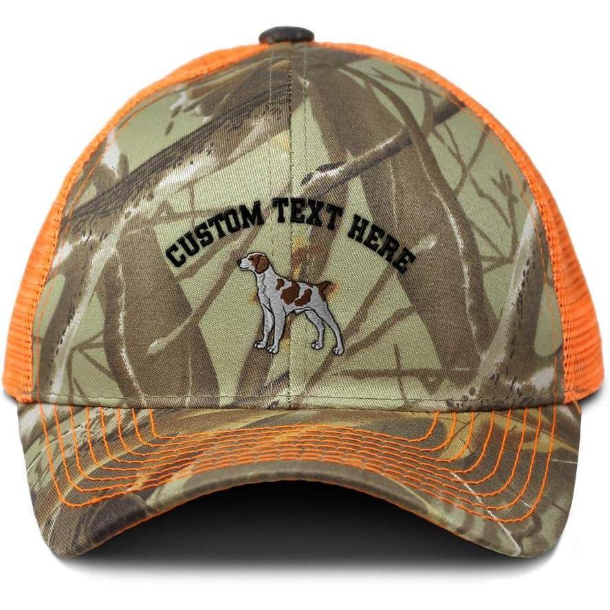 Custom Camo Mesh Trucker Hat Brittany Spaniel Pet Dog Embroidery Cotton(Orange Camo Design Only)