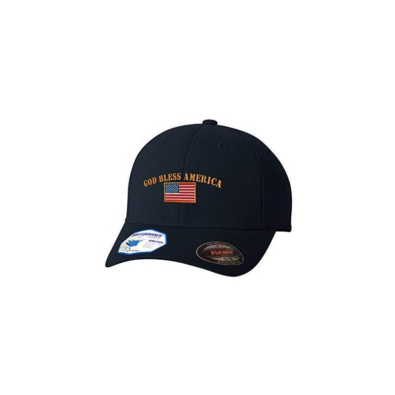 Custom Flexfit Hats for Men & Women God Bless America Embroidery Flags Polyester Dad Hat Baseball Cap(Dark Navy Design Only)