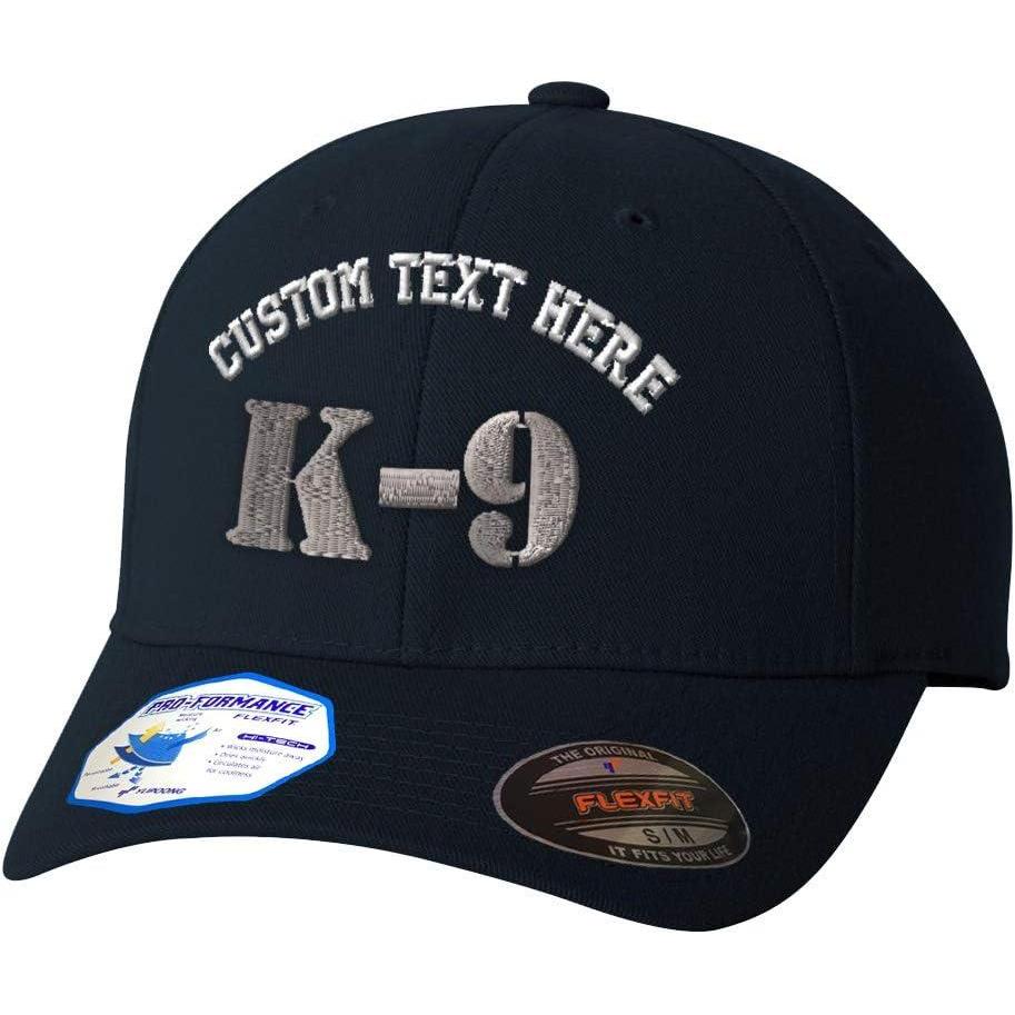 Custom Flexfit Hats for Men & Women K-9 Silver Logo Embroidery Letters Polyester Dad Hat Baseball Cap(Black Personalized Text Here)
