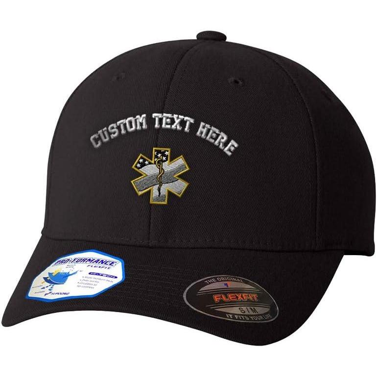Custom Flexfit Hats for Men & Women Paramedic EMT Embroidery Dad Baseball Cap(Black Personalized Text Here)