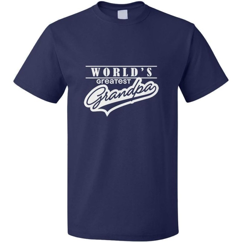 Custom Funny Graphic T Shirts for Men World’s Greatest Grandpa Cotton Top(Navy Design Only)
