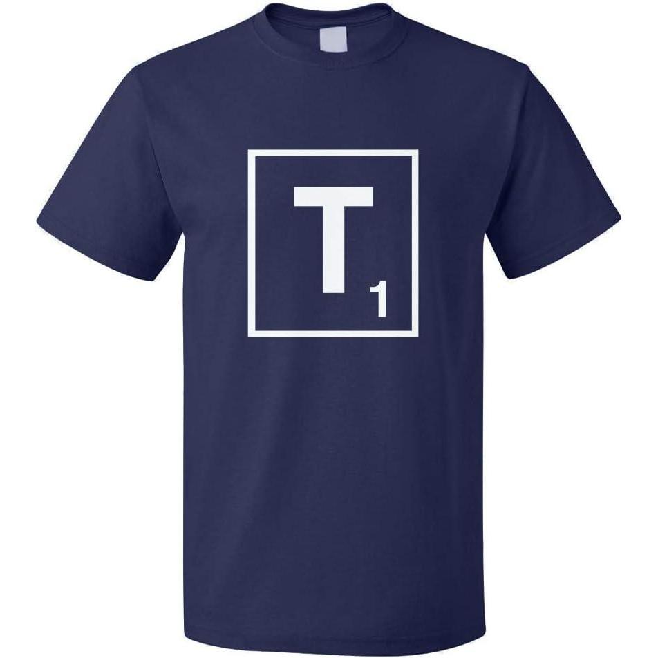 Custom Graphic T Shirts for Men T Scrabble Initial Monogram Letter T Cotton(Navy Design Only)