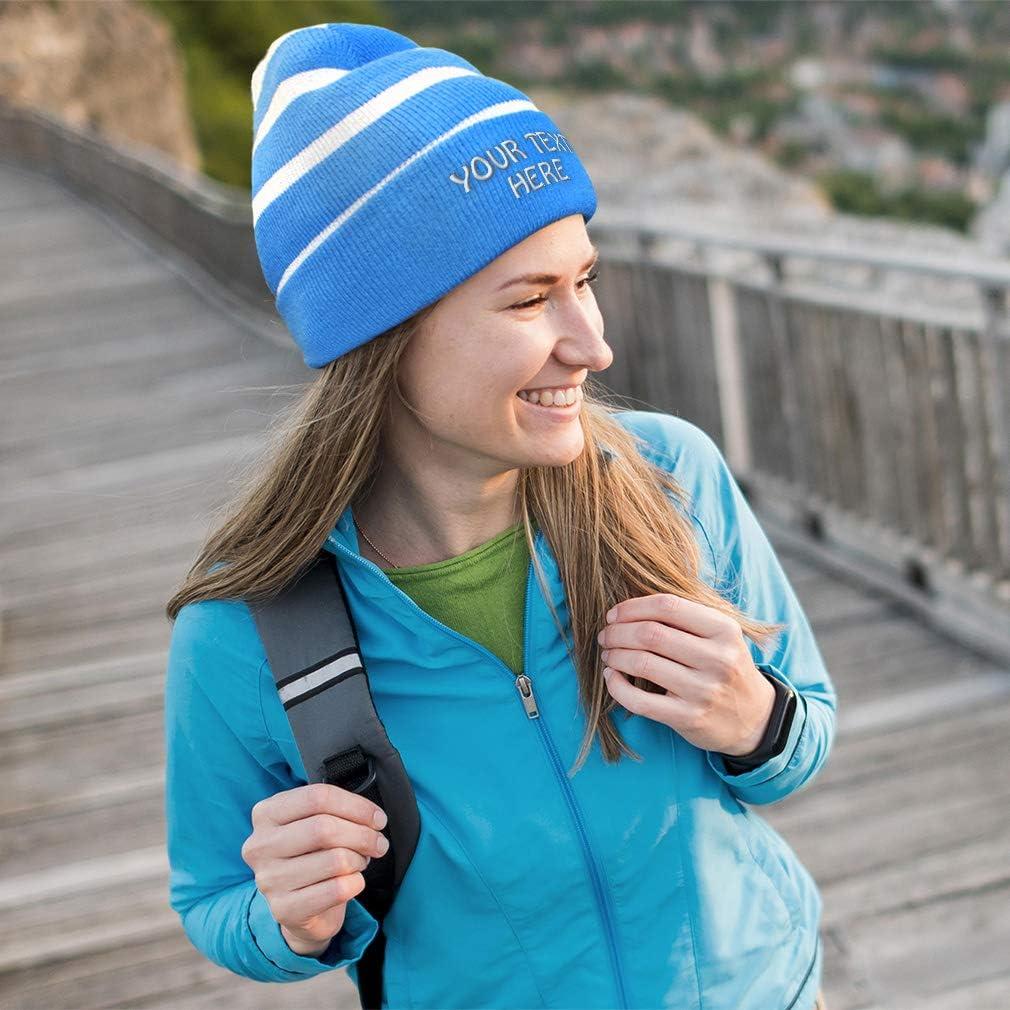 Custom Lined Beanie for Men Personalized Text Winter Acrylic 1 Size(Royal Blue White)