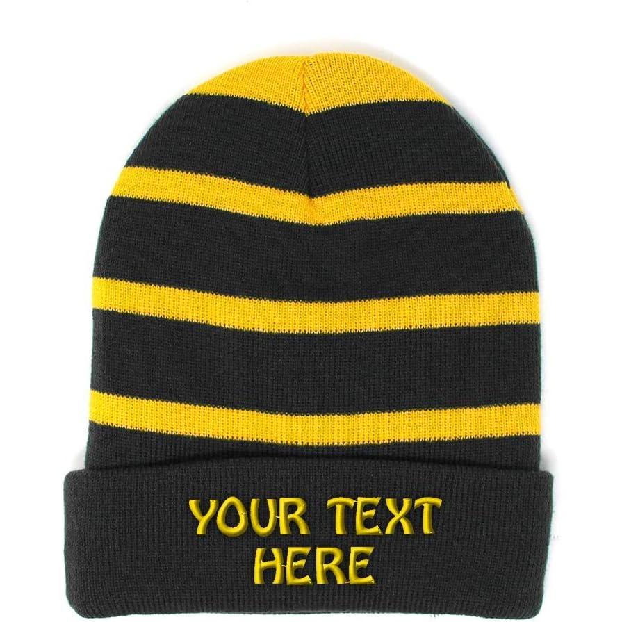 Custom Lined Beanie for Men Personalized Text Winter Acrylic 1 Size(Black Yellow)