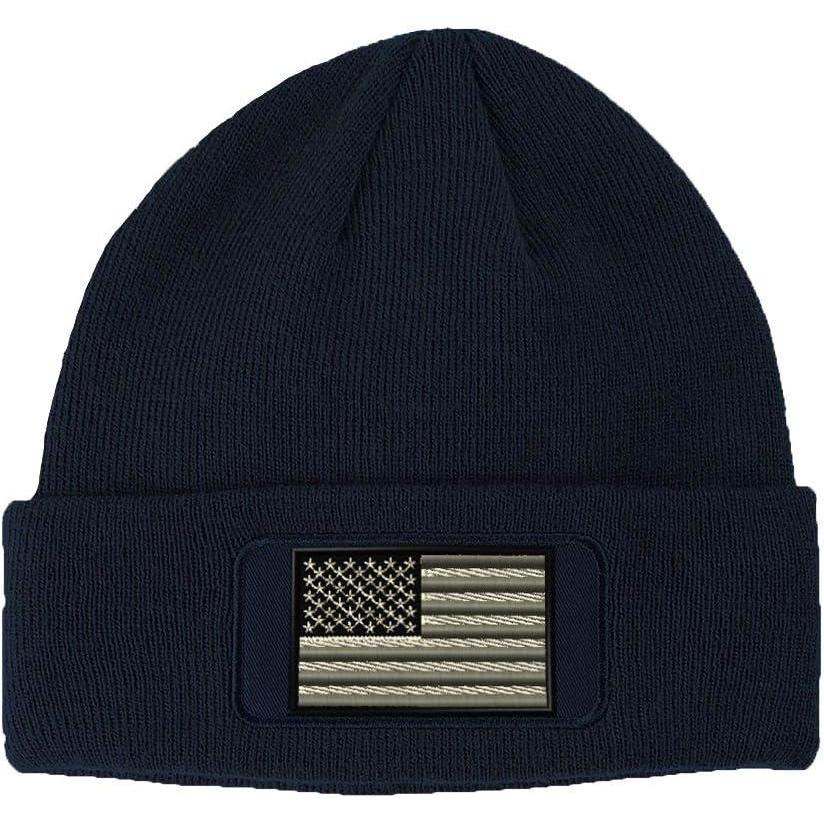 Custom Patch Beanie Black White American Flag Embroidery Acrylic(Navy)
