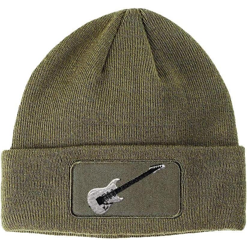 Custom Patch Beanie Electric Guitar White Embroidery Acrylic(Olive Green)
