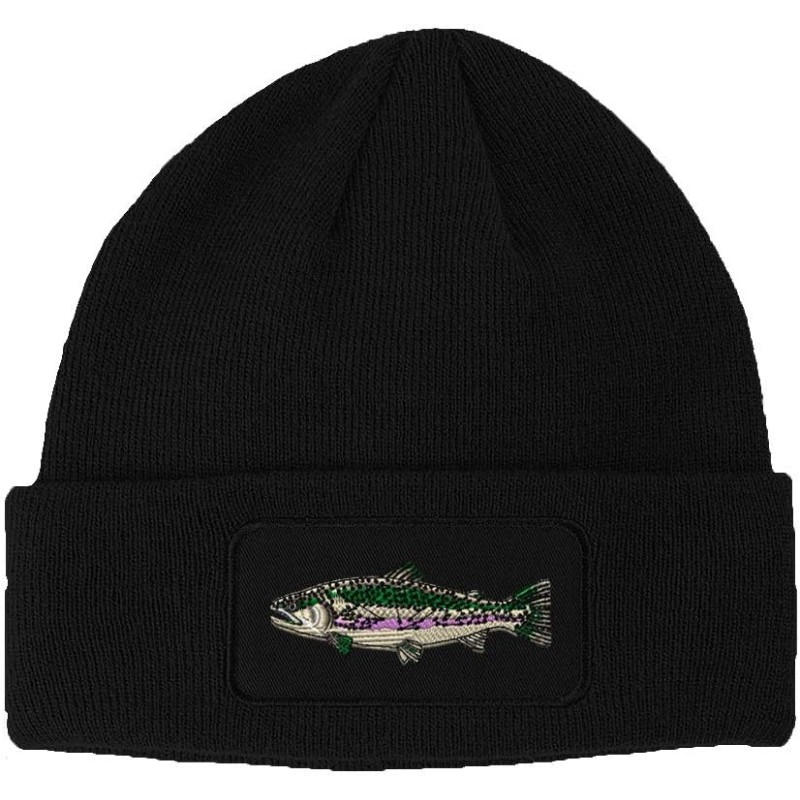 Custom Patch Beanie Fish Rainbow Trout Embroidery Skull Cap Hats for Men & Women(Black Design Only)