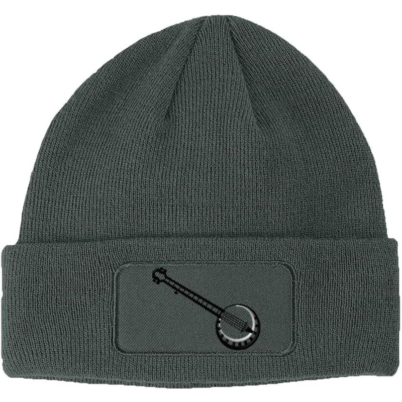 Custom Patch Beanie Music Instrument Banjo Embroidery Acrylic(Dark Grey Design Only)