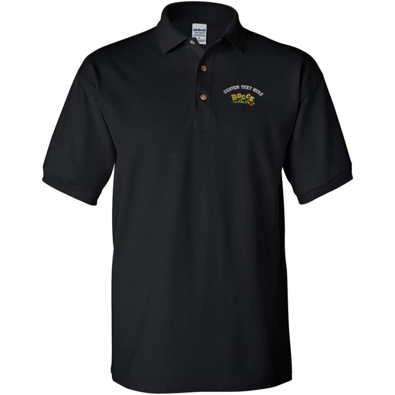 Custom Polo Shirts for Men Bocce Ball Embroidery Cotton Short Sleeves Golf Tees(Black Personalized Text Here)
