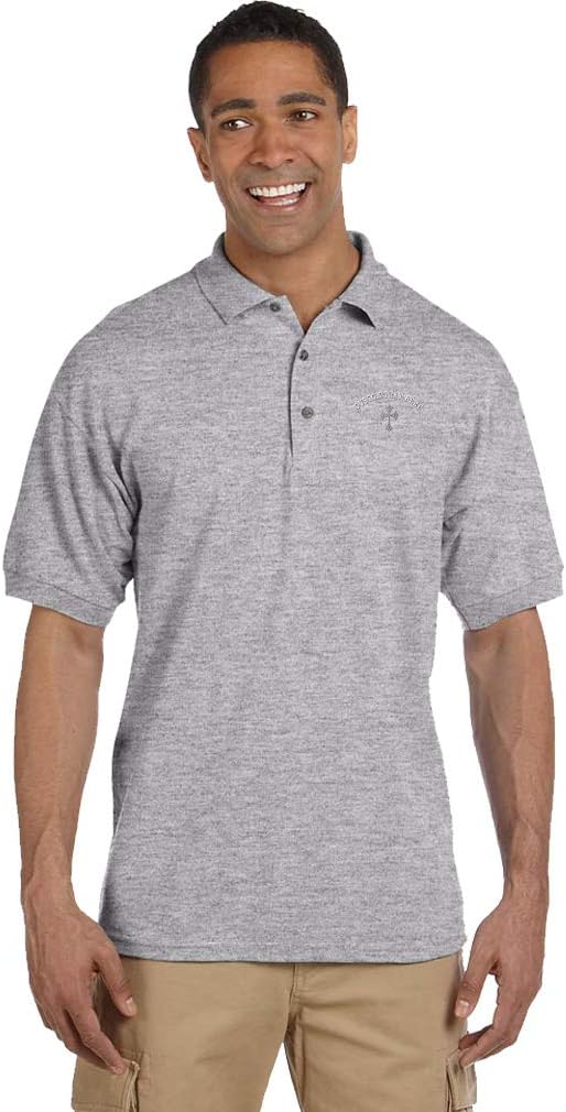 Custom Polo Shirts for Men Silver Roman Catholic Cross Embroidery Cotton(Black Design Only)