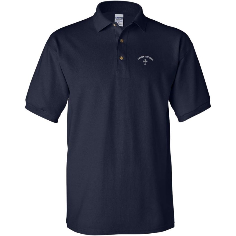 Be the first to review “Custom Polo Shirts for Men Silver Roman Catholic Cross Embroidery Cotton(Navy Personalized Text Here)”