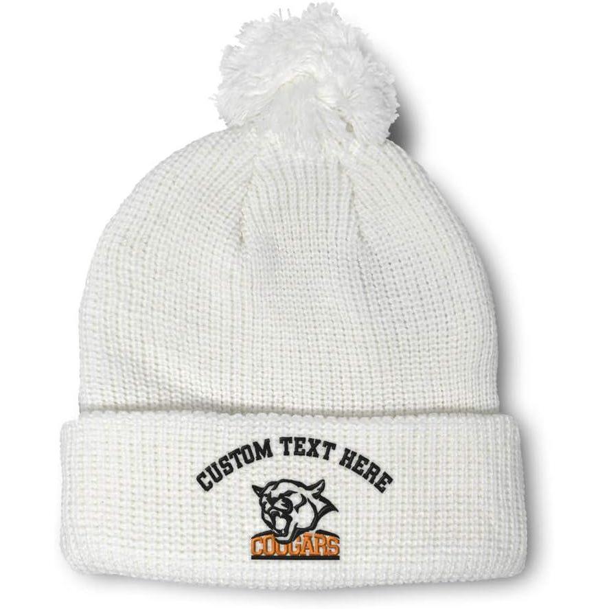 Custom Pom Pom Beanies for Women Animal Cougars Mascot Embroidery Skull Cap Winter Hats for Men 1 Size(White Personalized Text Here)