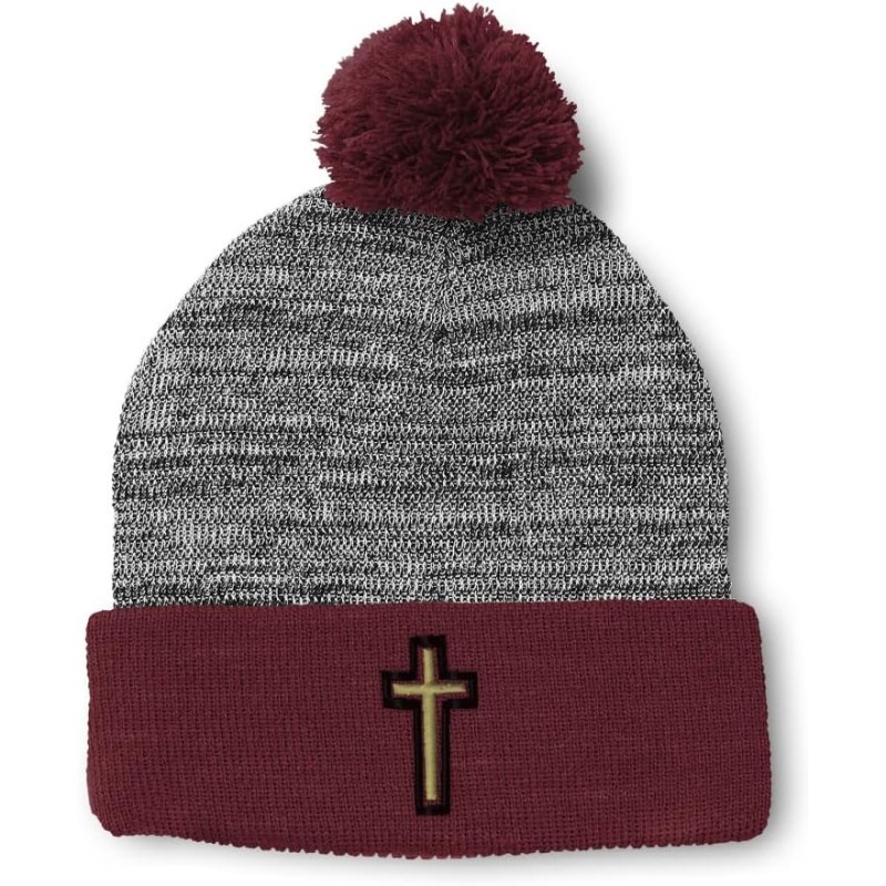 Custom Pom Pom Beanies for Women Chaplain Cross Jesus God Embroidery Skull Cap Winter Hats for Men 1 Size(Heather Gray Burgundy Design Only)