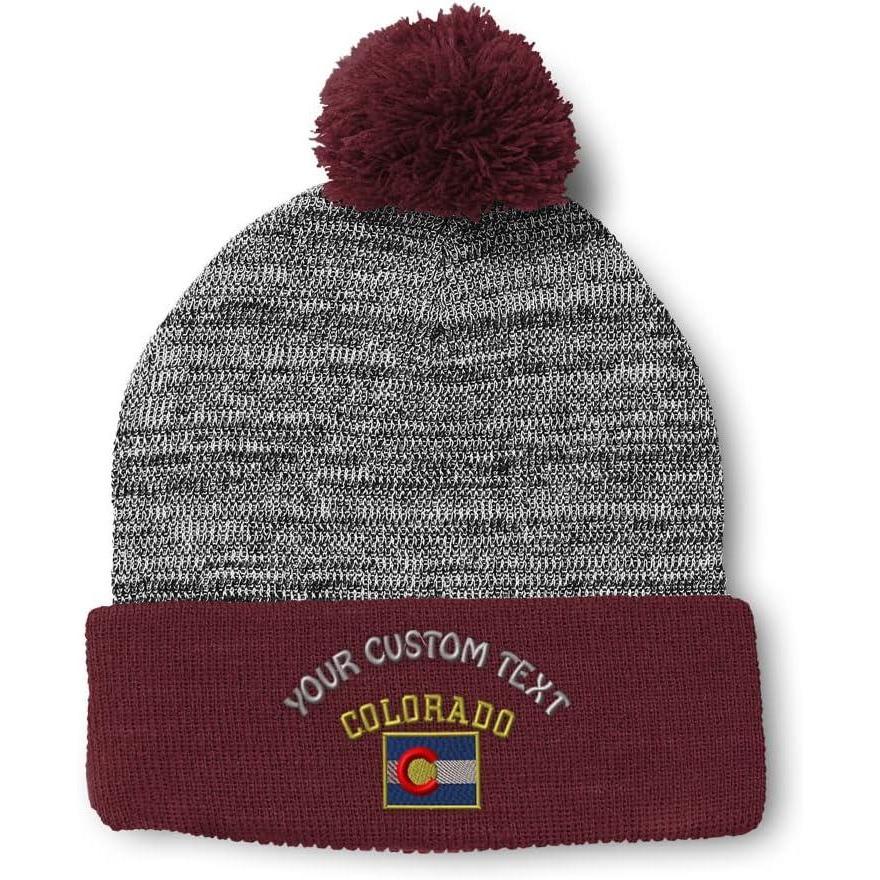 Custom Pom Pom Beanies for Women Colorado State Flag Letters Embroidery Skull Cap Acrylic 1 Size(Heather Gray Burgundy Personalized Text Here)
