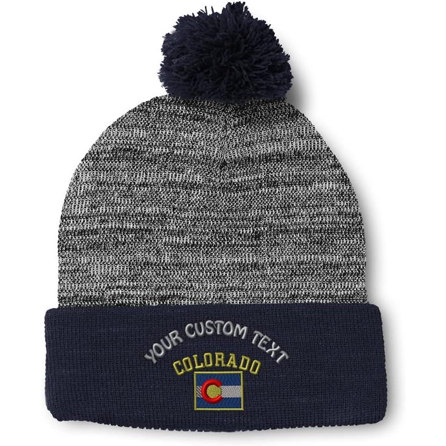 Custom Pom Pom Beanies for Women Colorado State Flag Letters Embroidery Skull Cap Acrylic 1 Size(Heather Gray Navy Personalized Text Here)