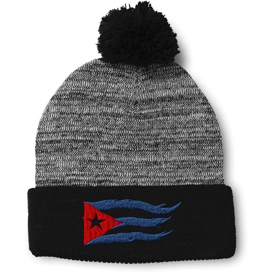 Custom Pom Pom Beanies for Women Cuba Cuban Flag Flame Embroidery Skull Cap Winter Hats for Men 1 Size(Heather Gray Black Design Only)
