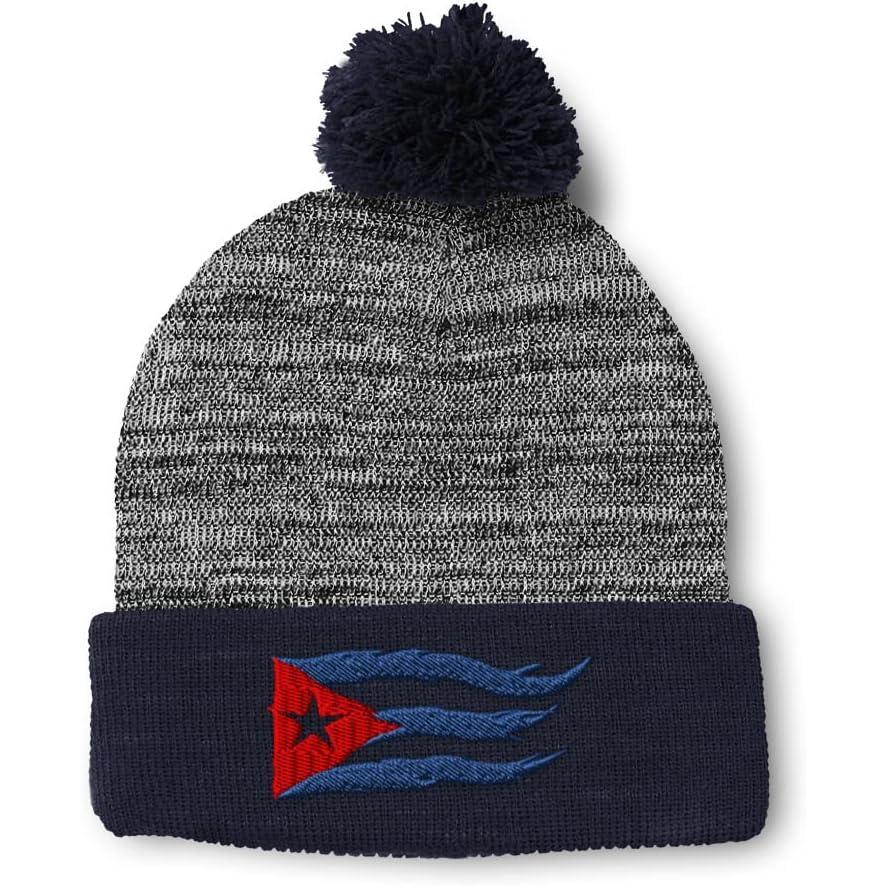 imageCustom Pom Pom Beanies for Women Cuba Cuban Flag Flame Embroidery Skull Cap Winter Hats for Men 1 SizeBlack Grey Personalized Text Here