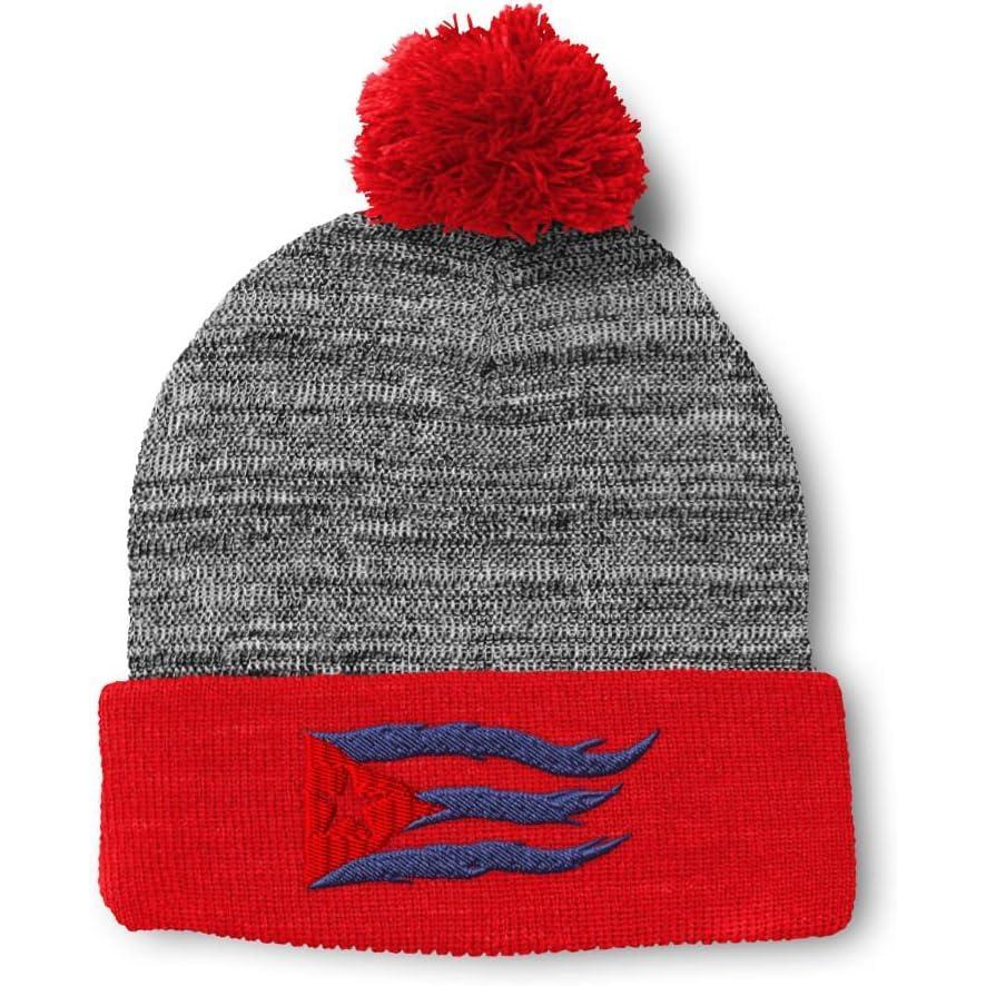 Custom Pom Pom Beanies for Women Cuba Cuban Flag Flame Embroidery Skull Cap Winter Hats for Men 1 Size(Heather Gray Red Design Only)