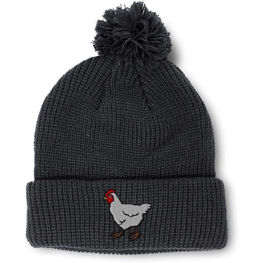 Custom Pom Pom Beanies for Women Farm Chicken Embroidery Skull Cap Bird Winter Hats for Men Acrylic 1 Size(American X Design Only)