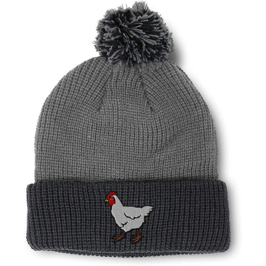 Custom Pom Pom Beanies for Women Farm Chicken Embroidery Skull Cap Bird Winter Hats for Men Acrylic 1 Size(Grey Black Design Only)