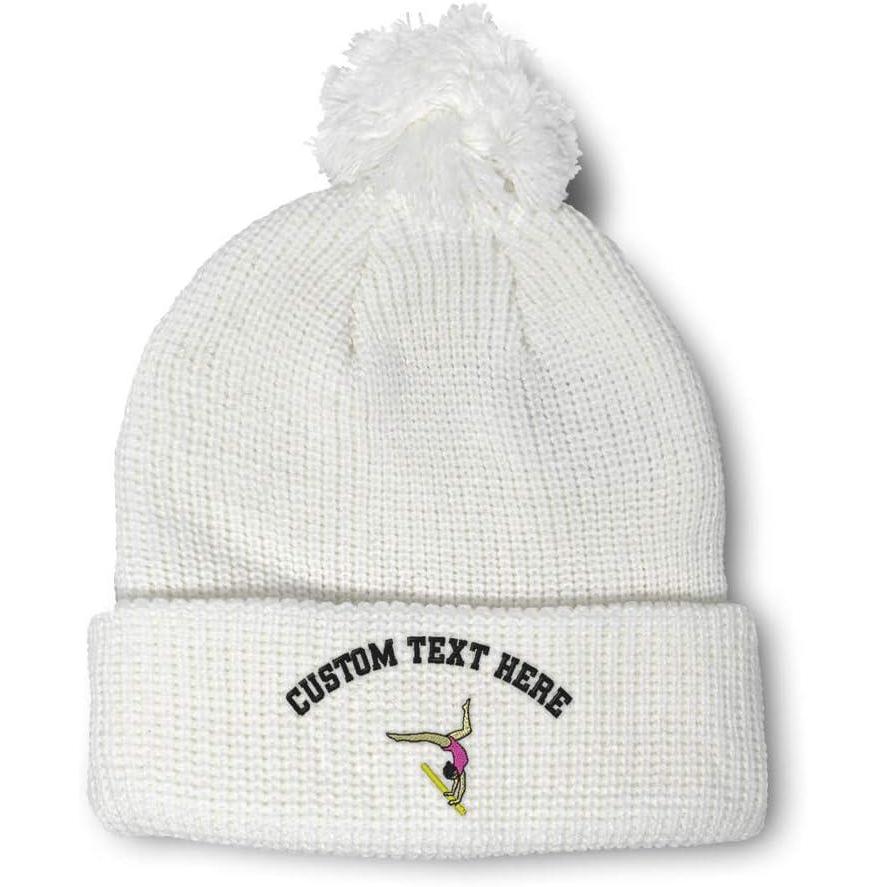 Custom Pom Pom Beanies for Women Gymnastics Logo Girl Embroidery Skull Cap Winter Hats for Men 1 Size(White Personalized Text Here)
