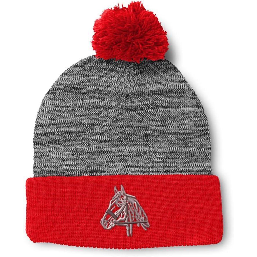 Custom Pom Pom Beanies for Women Horse Riding Equestrian Embroidery Skull Cap Winter Hats for Men 1 Size(Heather Gray Red Design Only)
