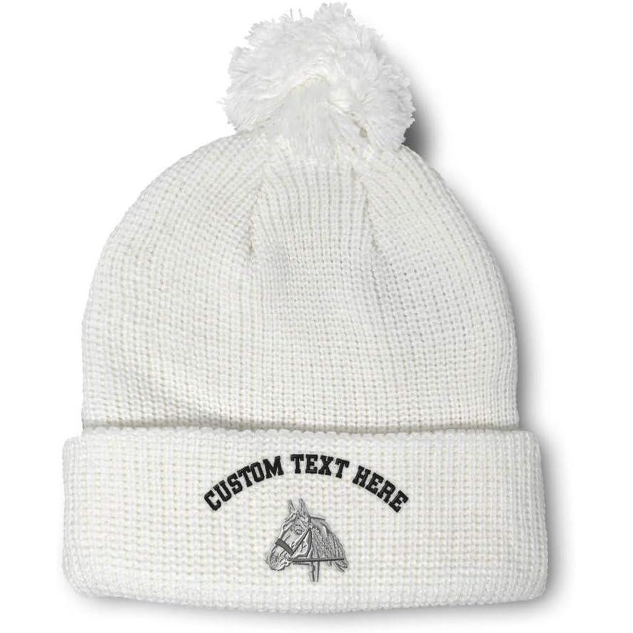 Custom Pom Pom Beanies for Women Horse Riding Equestrian Embroidery Skull Cap Winter Hats for Men 1 Size(White Personalized Text Here)