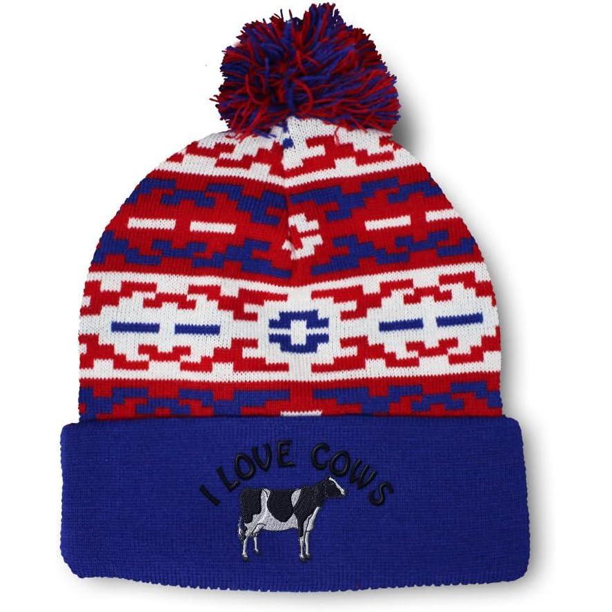 Custom Pom Pom Beanies for Women I Love Cows Embroidery Skull Cap Winter Hats for Men Acrylic 1 Size(American Pixel Design Only)
