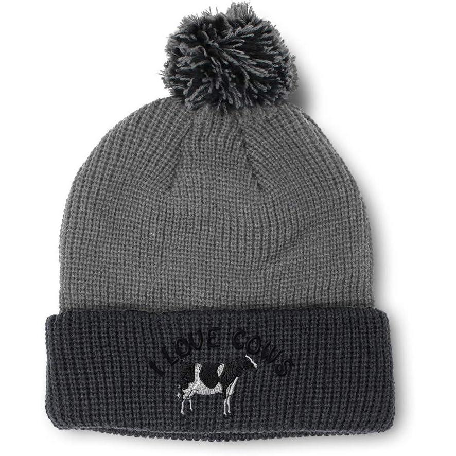 Custom Pom Pom Beanies for Women I Love Cows Embroidery Skull Cap Winter Hats for Men Acrylic 1 Size(Grey Black Design Only)