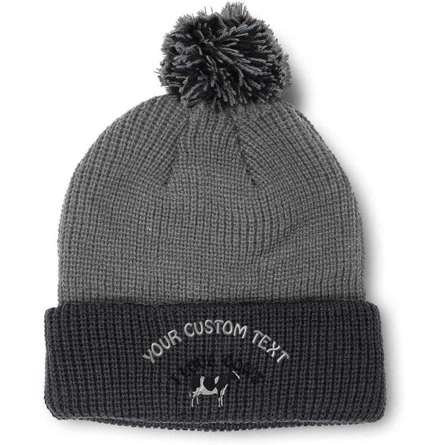 Custom Pom Pom Beanies for Women I Love Cows Embroidery Skull Cap Winter Hats for Men Acrylic 1 Size(Grey Black Personalized Text Here)