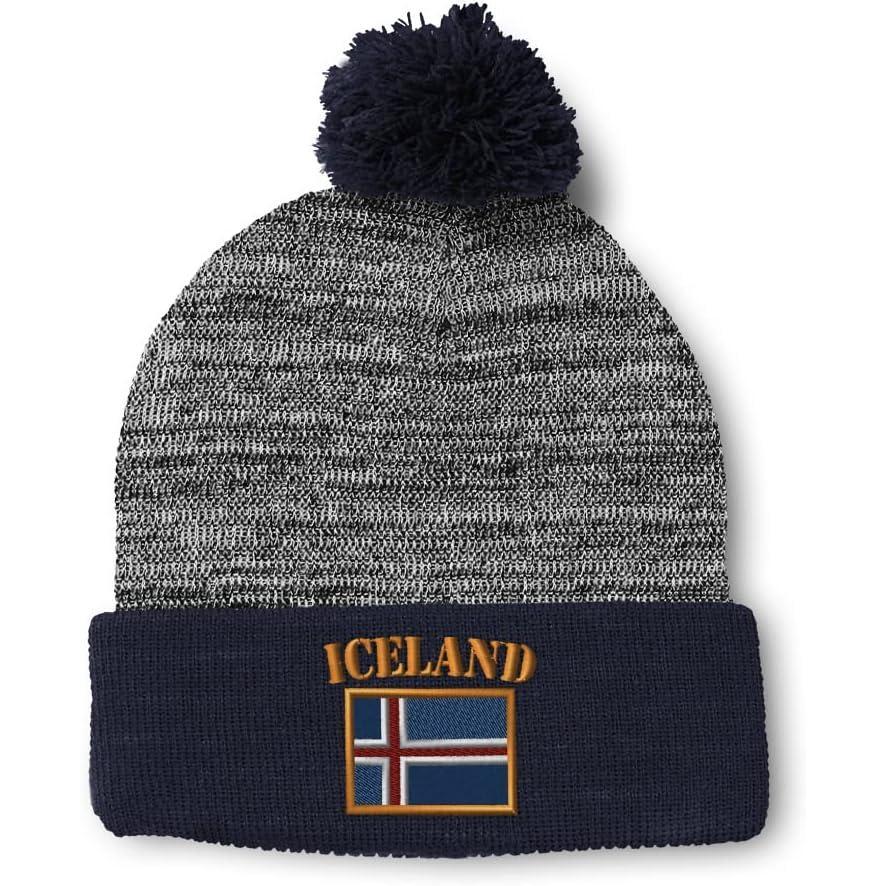 Custom Pom Pom Beanies for Women Iceland Flag Embroidery Skull Cap Flags Winter Hats for Men Acrylic 1 Size(Heather Gray Navy Design Only)