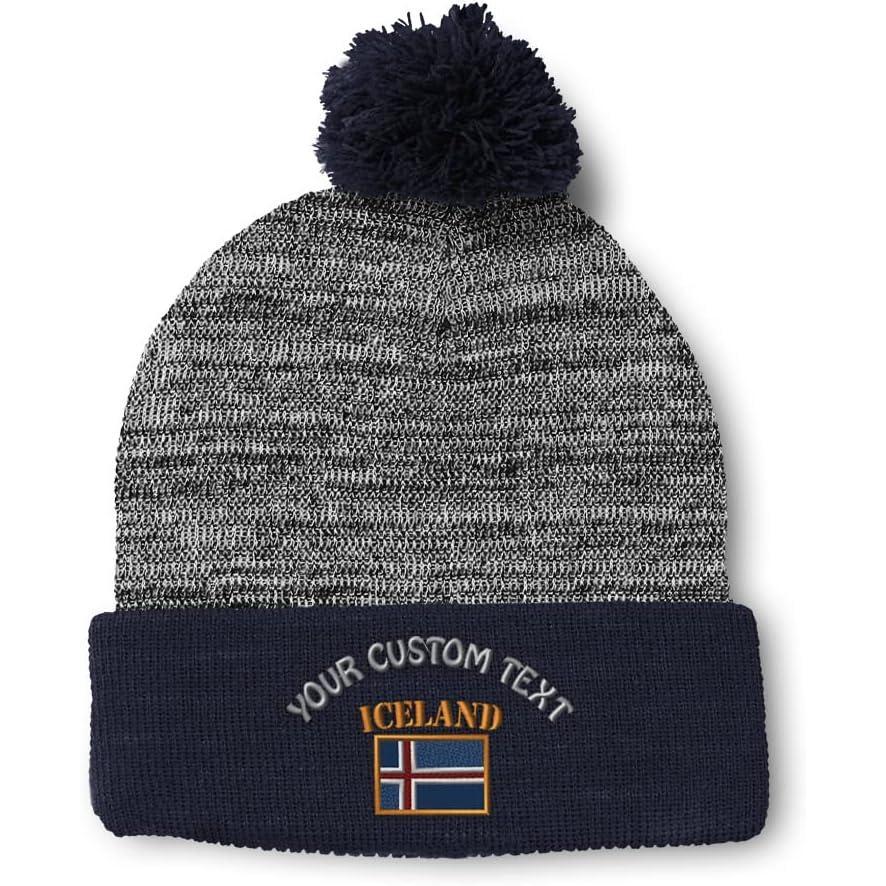 Custom Pom Pom Beanies for Women Iceland Flag Embroidery Skull Cap Flags Winter Hats for Men Acrylic 1 Size(Heather Gray Navy Personalized Text Here)