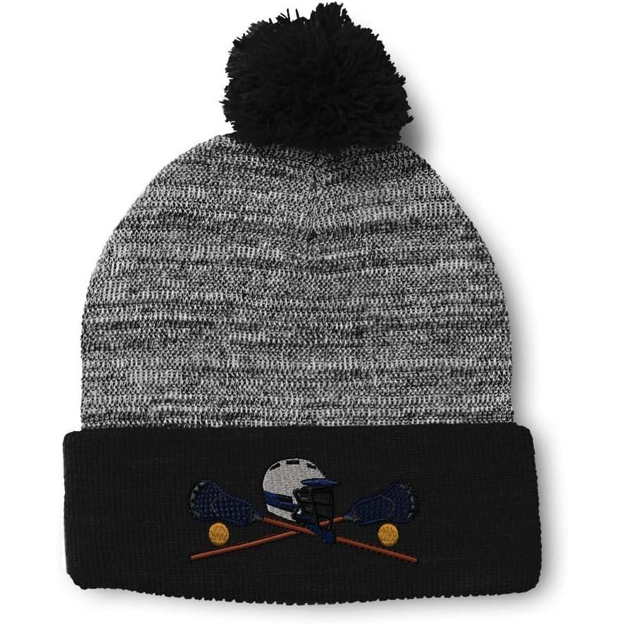Custom Pom Pom Beanies for Women Lacrosse Sports F Embroidery Skull Cap Winter Hats for Men Acrylic 1 Size(Heather Gray Black Design Only)