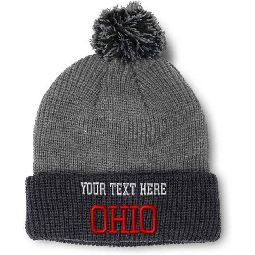 imageCustom Pom Pom Beanies for Women Ohio State USA America B Embroidery Skull Cap Winter Hats for Men 1 SizeHeather Gray Burgundy Personalized Text Here