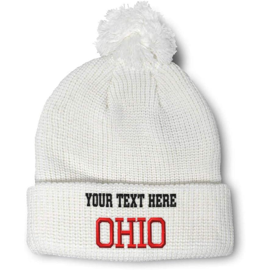 imageCustom Pom Pom Beanies for Women Ohio State USA America B Embroidery Skull Cap Winter Hats for Men 1 SizeAmerican Pixel Design Only