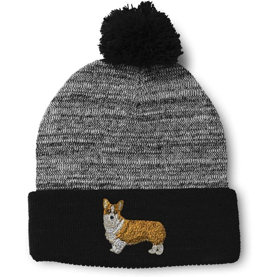 Custom Pom Pom Beanies for Women Pembroke Welsh Corgi Dog B Embroidery Skull Cap Winter Hats for Men 1 Size(Heather Gray Black Design Only)