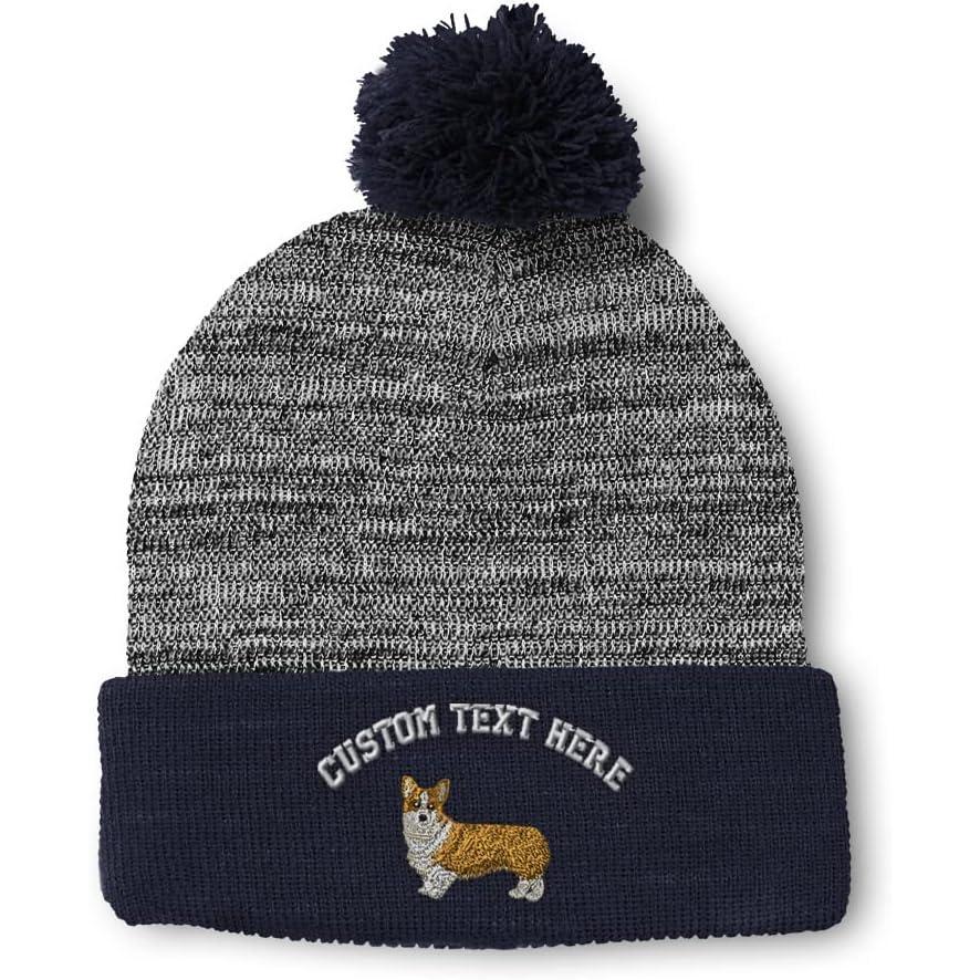 imageCustom Pom Pom Beanies for Women Pembroke Welsh Corgi Dog B Embroidery Skull Cap Winter Hats for Men 1 SizeAmerican X Personalized Text Here