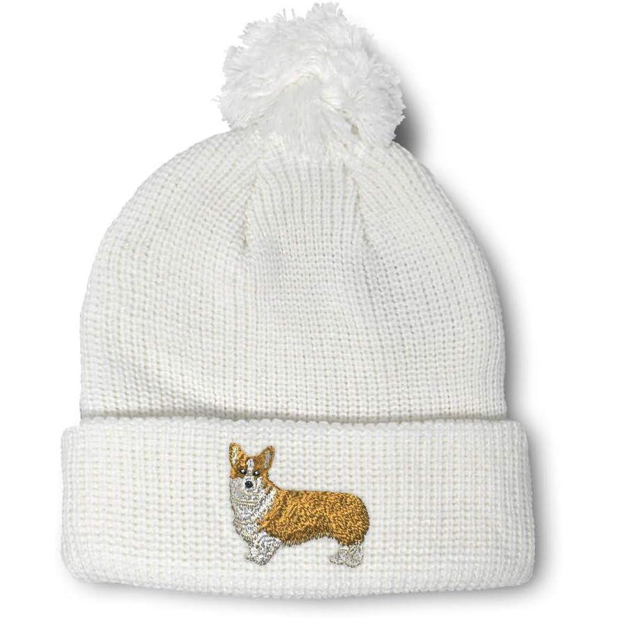 Custom Pom Pom Beanies for Women Pembroke Welsh Corgi Dog B Embroidery Skull Cap Winter Hats for Men 1 Size(White Design Only)